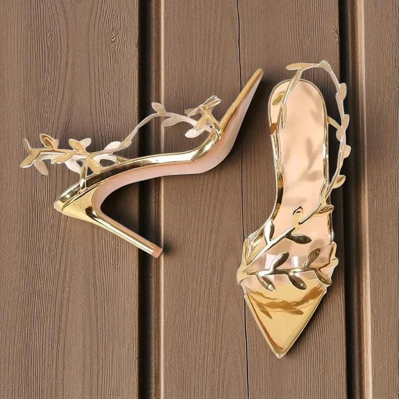 Gold Leaf Gladiator Sandals: Patent Leather Pointed Toe